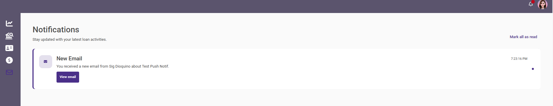 - Push Notification Enhancements: Events will persist and be grouped by loan, instead of disappearing when the page is refreshed